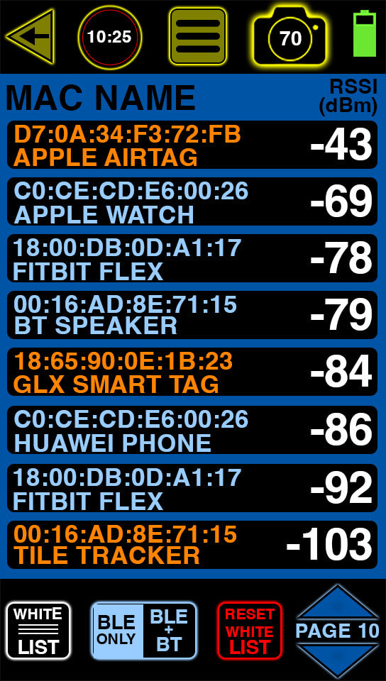 | Bluetooth Low Energy Channels: 1-40 including Apple AirTag®, Samsung Galaxy SmartTag® and Tile Tracker® |